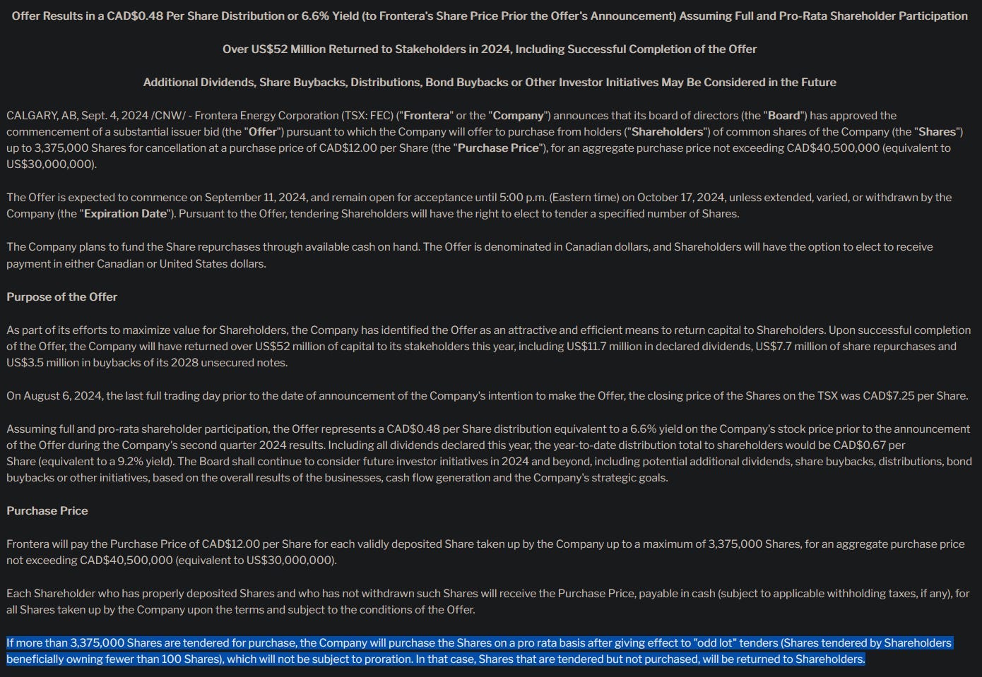 So if the offer is attractive, you usually get more shares tendered than what the company actually wants to buy.